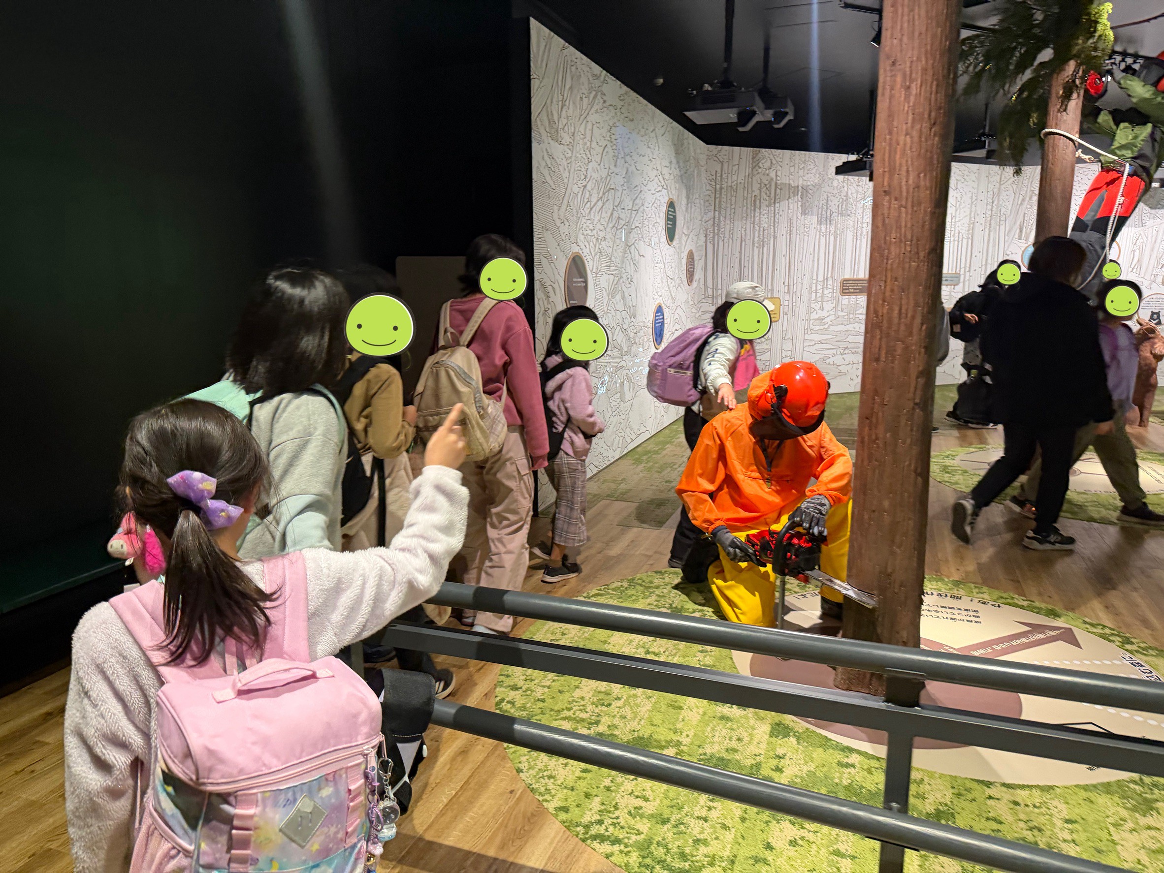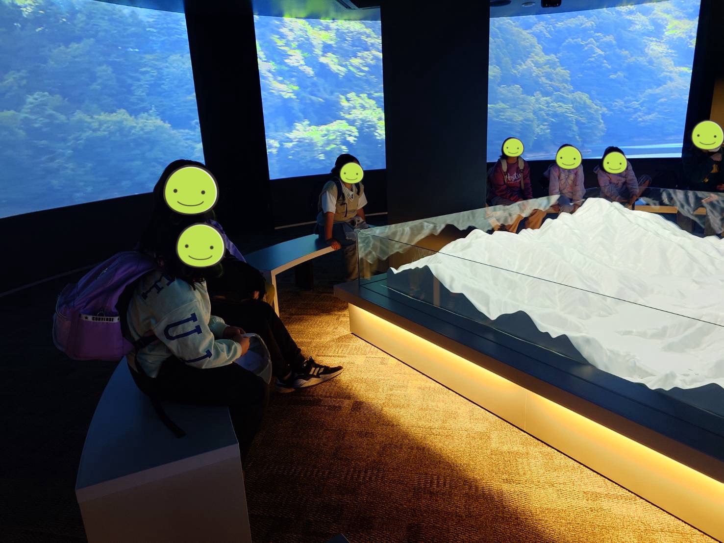 昼食後は館内を見学。奥多摩の豊かな自然やダムの仕組みについて、大きな展示や映像を見ながら楽しく学びました。「すごい!」「こうなってるんだ!」と興味津々の様子で、普段は見られない好奇心いっぱいの表情を見せてくれました。
