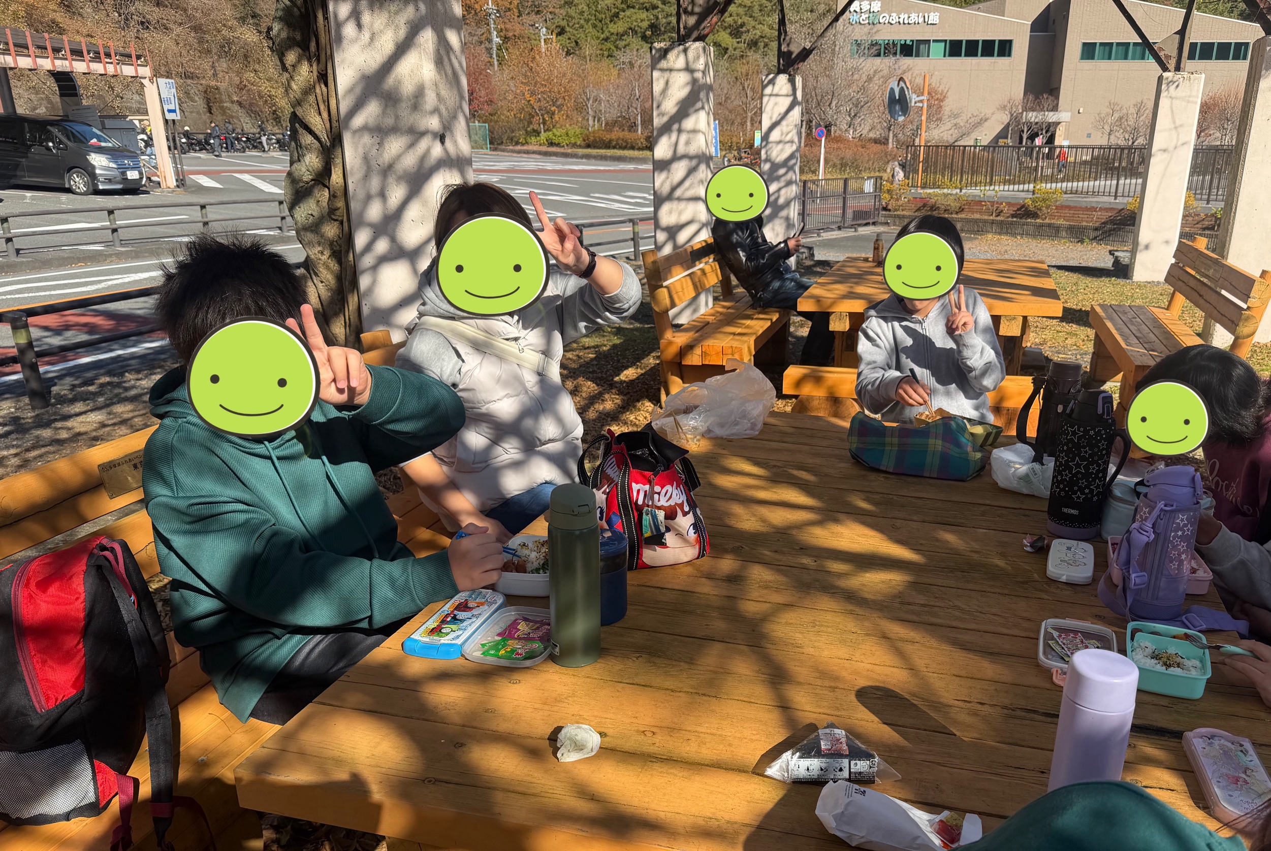 晩秋の爽やかな空気の中、みんなでのお弁当タイム。外で食べるお弁当は格別で、子どもたちの笑顔がたくさん見られました。