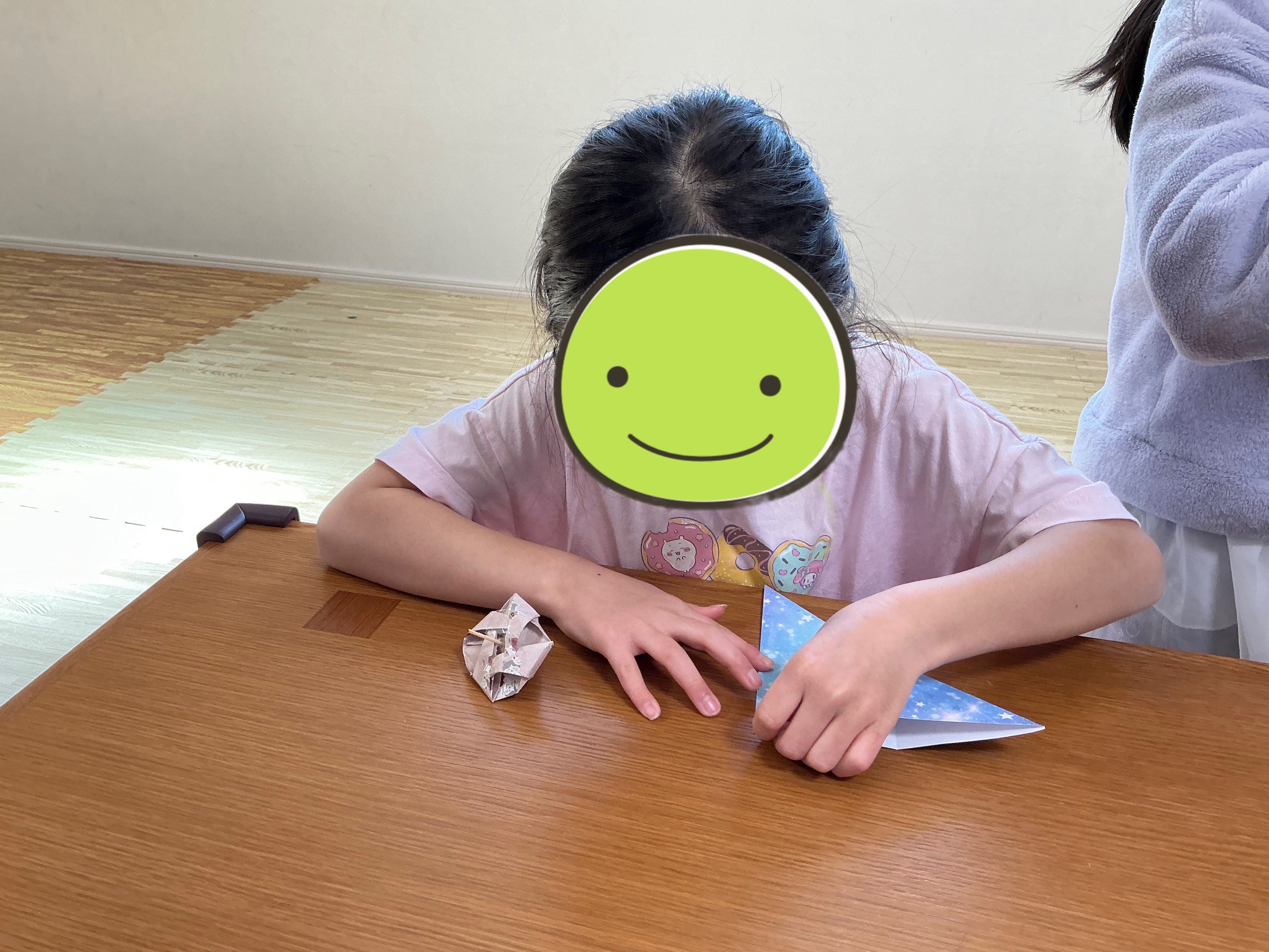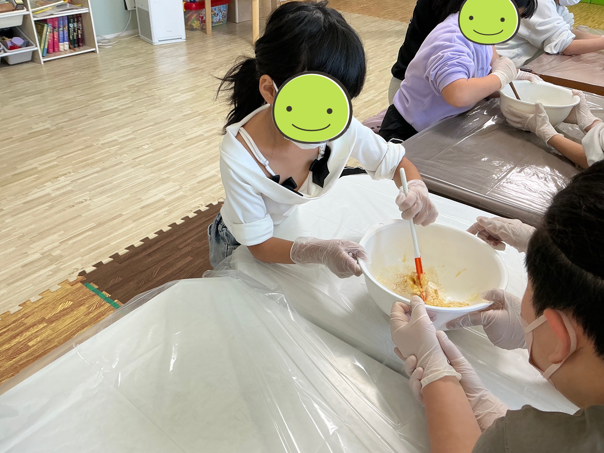 3月14日(土)は「スノーボールクッキー作り」と「宝石コマ作り」を行いました。クッキー作りでは材料を混ぜたり、生地を丸める際の繊細な力加減を意識しながら丁寧に取り組みました。手先の巧緻性を育みながら、焼き上がりを心待ちにするワクワク感も大切にしました。コマ作りでは折り紙を一工程ずつ折り進め、完成後はコマを回して友達と一緒に楽しみました。おやつに自分たちで作ったクッキーを食べ「おいしいね」と笑顔がいっぱいの楽しい時間になりました。作る喜びと達成感を味わいながら、手指の操作性や集中力、友達との関わりを育む事ができました。